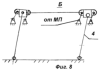 Рычаг 24 жестко связан (заштифтован) с приводным валом 13 (общим для половины опор машины находящихся в одной фазе). Для передвижения ползуна имеется механизм, состоящий из рычага 25, оси 26, вала 27, тяги 28, втулки 29, соосной с осью 30 качания кулисы 22, приводного винта 31 и управляющего рычага 32, причем рычаг 24 соединен с камнем-ползуном 23 тягой 33. Входной вал 19 соединен с валом 30 через зубчатую пару 34. Стойка 2 соединена через сферический шарнир 35 с шейкой кривошипа 5, вал которого соединен с реверсивным силовым приводом 36, управляемым выключателями 17 и 18.