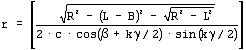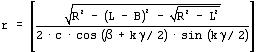 R – минимальный радиус поворот опоры, L- расстояние от среднего положения опоры до середины базы машины, В – полуразмах шагающей опоры движителя, – полуразмах приводного кривошипа стойки, С – отношение длины нижней части стойки, от крепления приводного кривошипа, к длине верхней ее части, k – передаточное отношение механизма поворота, k=1.