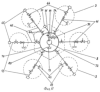 К правой многоугольной фигуре 2′ (фиг.1 и 2) из выгородки 59 центральной пирамиды-поплавка 9 маршрут аналогичен (показан стрелками на фиг.2 через линейную связь 6).
