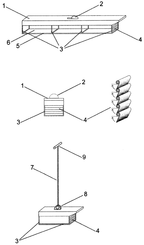 В отличие от существовавших поплавков и надувных лыж с наличием или без плиц или мягких карманов на днище, открывающихся при движении ноги лыжника назад, предлагаемые лыжи (см. чертеж) имеют в подводной части твердый каркас (3) с постоянно неизменным объемом воды в нем, свободно протекаемой при движении лыжи вперед и перекрываемой передней стенкой полосками (типа жабер, чешуи) (4).