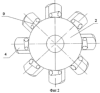 Лопасти 4 установлены на наружной поверхности оболочки 2 с возможностью поворота относительно продольной оси, расположенной в радиальном направлении, перпендикулярно к оси 3 оболочки 2.