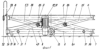 Ненагруженные участки ветвей 18-21, охватывающих звездочки 14-17 на приводном валу 13, удерживаются в натянутом положении пружинами растяжений 27-30. При крайних верхнем и нижнем положениях срабатывают концевые выключатели, которые исключают чрезмерные, недопустимые нагрузки в ветвях 18-21 втулочно-роликовых цепей.