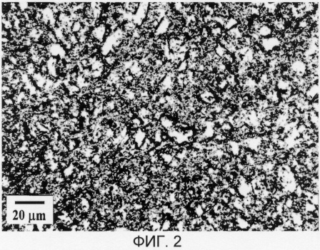 С целью преобразования мелкозернистой глобулярной микроструктуры в мелкозернистую пластинчатую проводят отжиг при температуре 920°С в течение 0,5 час. В результате такой термомеханической обработки получают микроструктуру со средним размером зерен около 0,5 мкм и коэффициентом формы зерен не менее 2,5.