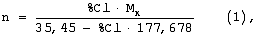 Способ получения дезинфицирующего средства в виде производного полигексаметиленгуанидина, включающий термическую поликонденсацию введением гексаметилендиамина в расплав гуанидингидрохлорида, нагревание реакционной смеси и ее термостатирование при повышенной температуре и перемешивании, получения целевого продукта, отличающийся тем, что поликонденсацию проводят в две стадии, на первой стадии в расплав гуанидингидрохлорида вводят гексаметилендиамин до молярного соотношения 1:1 и термостатированием до прекращения выделения аммиака, а на второй стадии в образовавшийся расплав хлорида полигексаметиленгуанидина вводят избыток гексаметилендиамина, который берут из расчета его молярного соотношения с гуанидингидрохлоридом 2:n, где n вычисляют исходя из молекулярной массы концевых групп производного полигексаметиленгуанидина по следующей формуле: где n – степень полимеризации производного полигексаметиленгуанидина, образовавшегося на первой стадии; % Cl – относительное содержание по массе хлора в производном полигексаметиленгуанидина; МК – молекулярная масса концевых групп производного полигексаметиленгуанидина, причем при МК=17,034 относительное содержание Cl определяют в реакционной смеси до ввода избытка гексаметилендиамина, при МК=215,382 относительное содержание Cl определяют в составе производного полигексаметиленгуанидина, образовавшегося на второй стадии; и термостатируют реакционную смесь при температуре 165-200°С до прекращения выделения аммиака и получения целевого продукта в виде полимераналога хлорида полигексаметиленгуанидина.