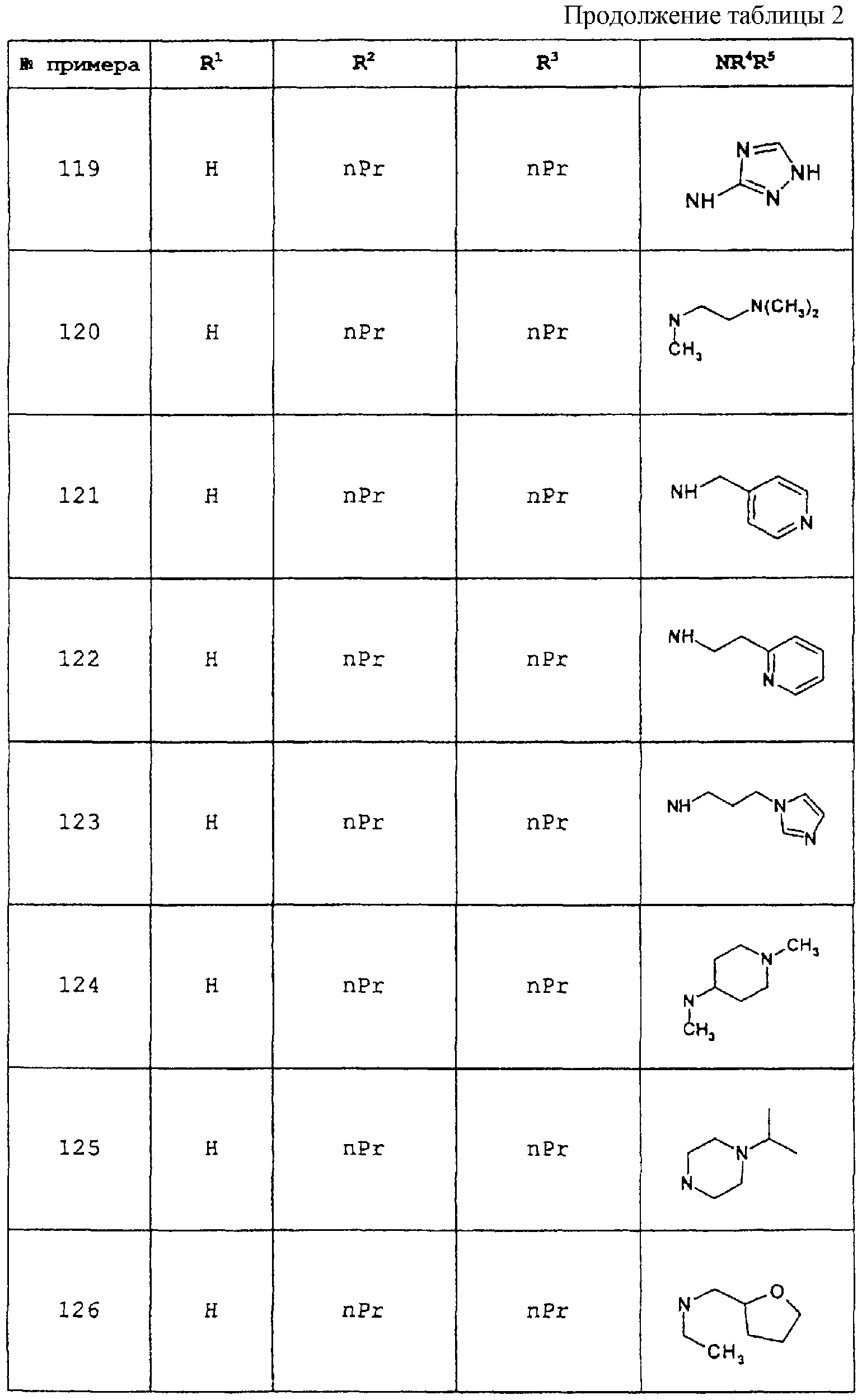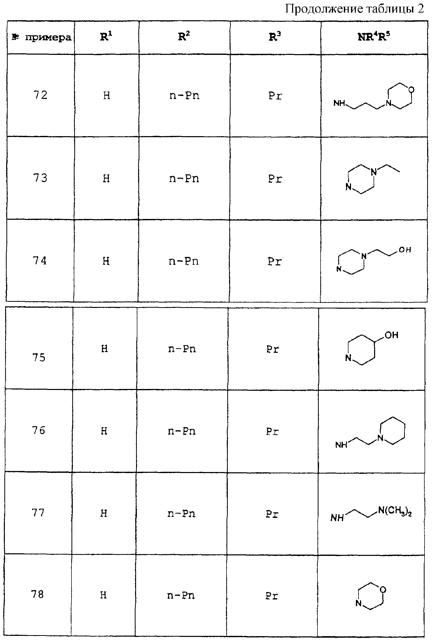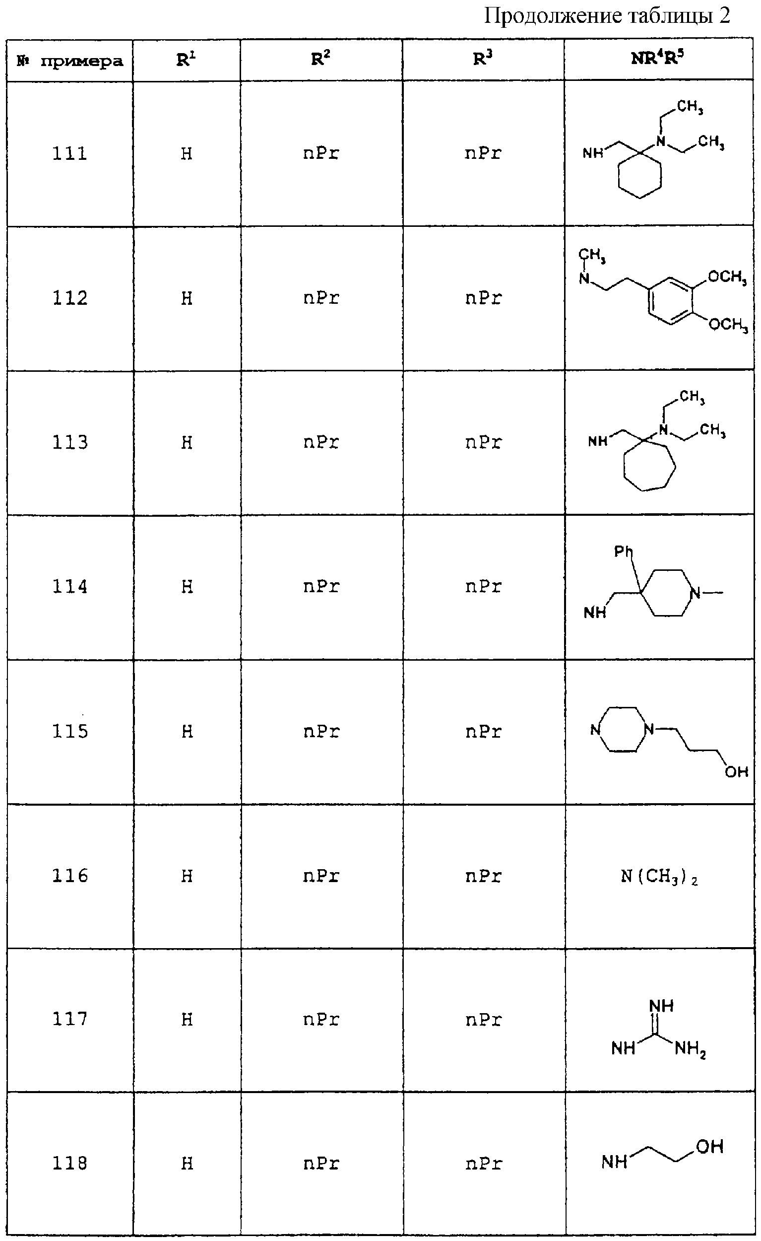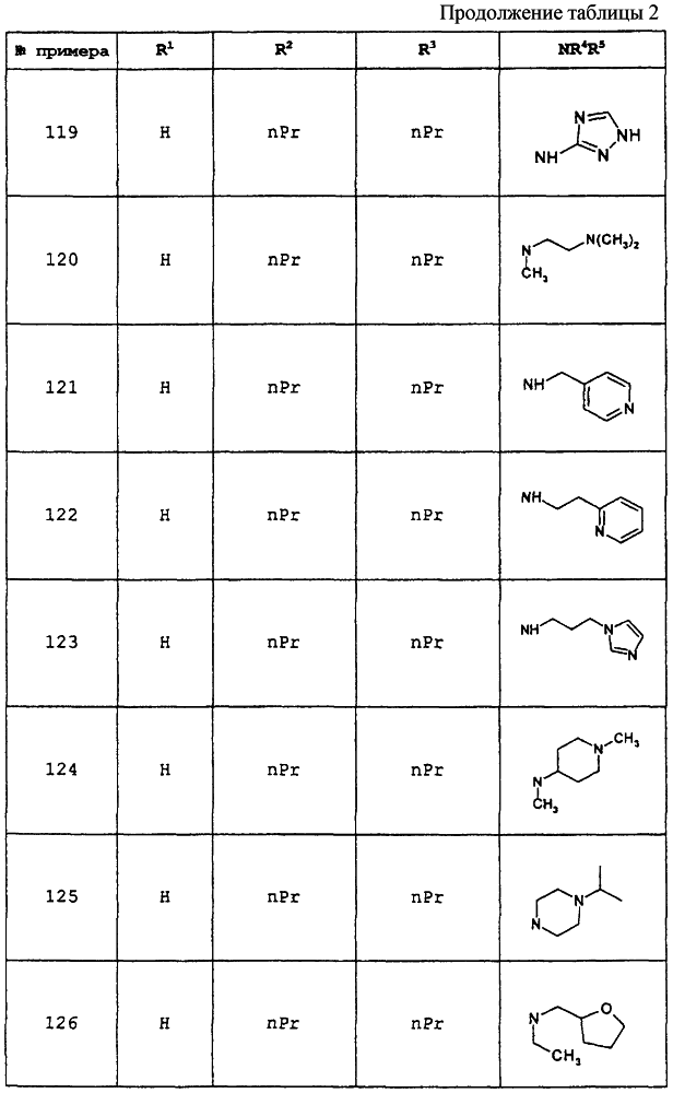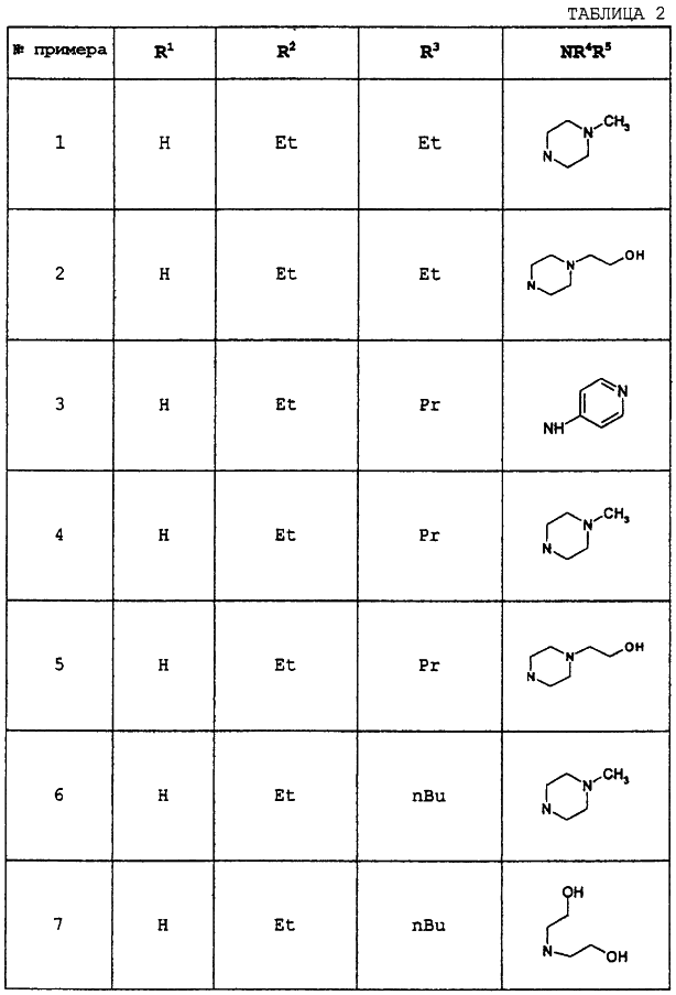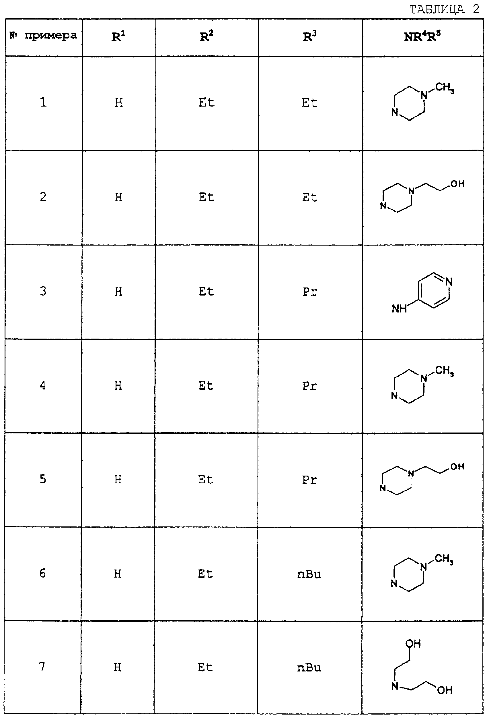 n равно 0, 1, 2 или 3 и R7 представляет пиридильную, пиперидильную, пиперазинильную, морфолинильную, триазолильную, тетразолильную, пирролидинильную, 1-этил-аминоциклогекс-1-ильную, 1-диэтиламиноциклогекс-1-ильную, 1-этиламиноциклогепт-1-ильную, 1-диэтиламиноциклогепт-1-ильную, 3,4-диметоксифенильную, 1-метил-4-фенилпиперидин-4-ильную, имидазолильную, 1-метилпиперидин-4-ильную, тетрагидрофуранильную, 2,2,6,6-тетраметилпиперид-4-ильную, 4-гидроксипиперид-4-ильную, 1-ацетамидоциклогепт-1-ильную, 1-метил-3-азетидинильную или 4-метилпиперазин-1-ильную группу. Наиболее предпочтительными являются соединения, у которых R4 представляет водород или метильную или этильную группу и R5 представляет пиридильную, 1-морфолинилэтильную, 1-пиперидил-этильную, 1-морфолинилпропильную, 1-пирролидилэтильную, 1-этиламиноциклогексилметильную, 1-этиламиноциклогептил-метильную, 1-диэтиламиноциклогексилметильную, 1-диэтил-аминоциклогептилметильную, 2-(3,4-диметоксифенил)этильную, 1-метил-4-фенилпиперидин-4-илметильную, 1Н-[1,2,4]триазол-3-ильную, пиридин-4-илметильную, 2-пиридин-2-илэтильную, 3-имидазол-1-илпропильную, 1-метилпиперидин-4-ильную, тетра-гидрофуран-2-илметильную, 2,2,6,6-тетраметилпиперидин-4-илметильную, 1-ацетамидоциклогепт-1-илметильную, 1-метил-азетидин-3-ильную или 4-метилпиперазин-1-ильную группу.