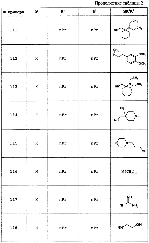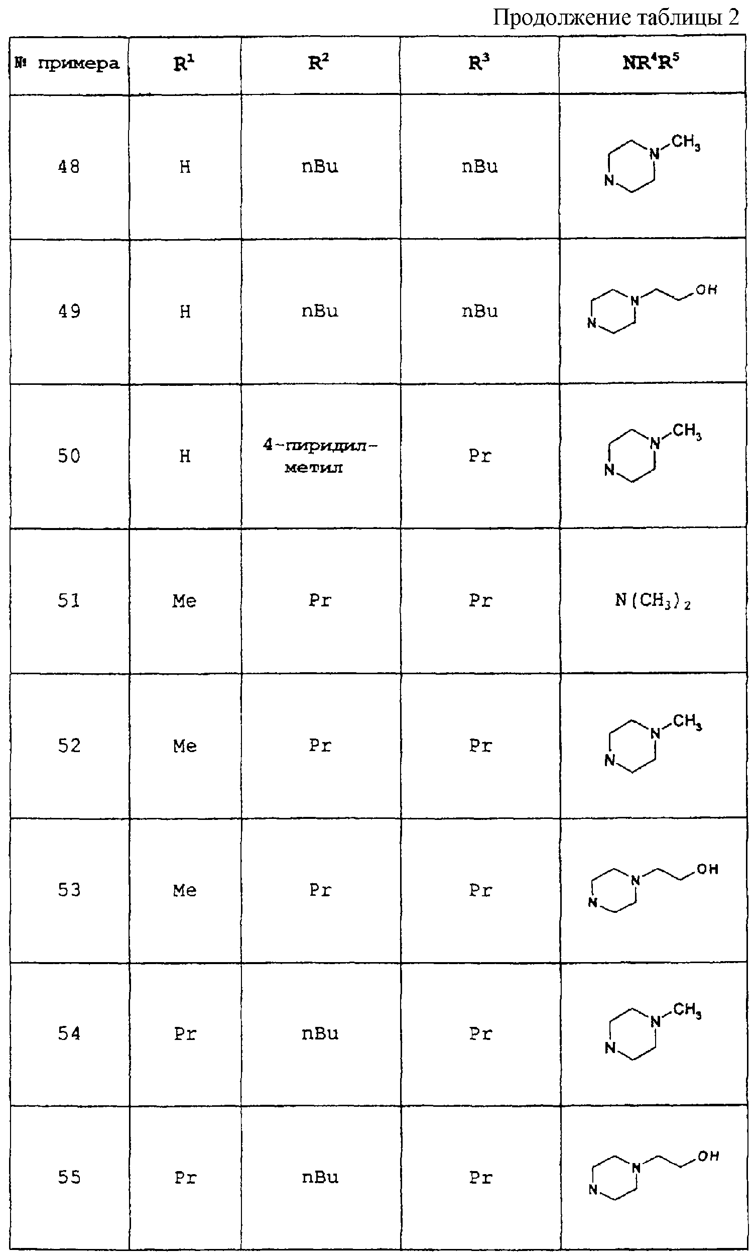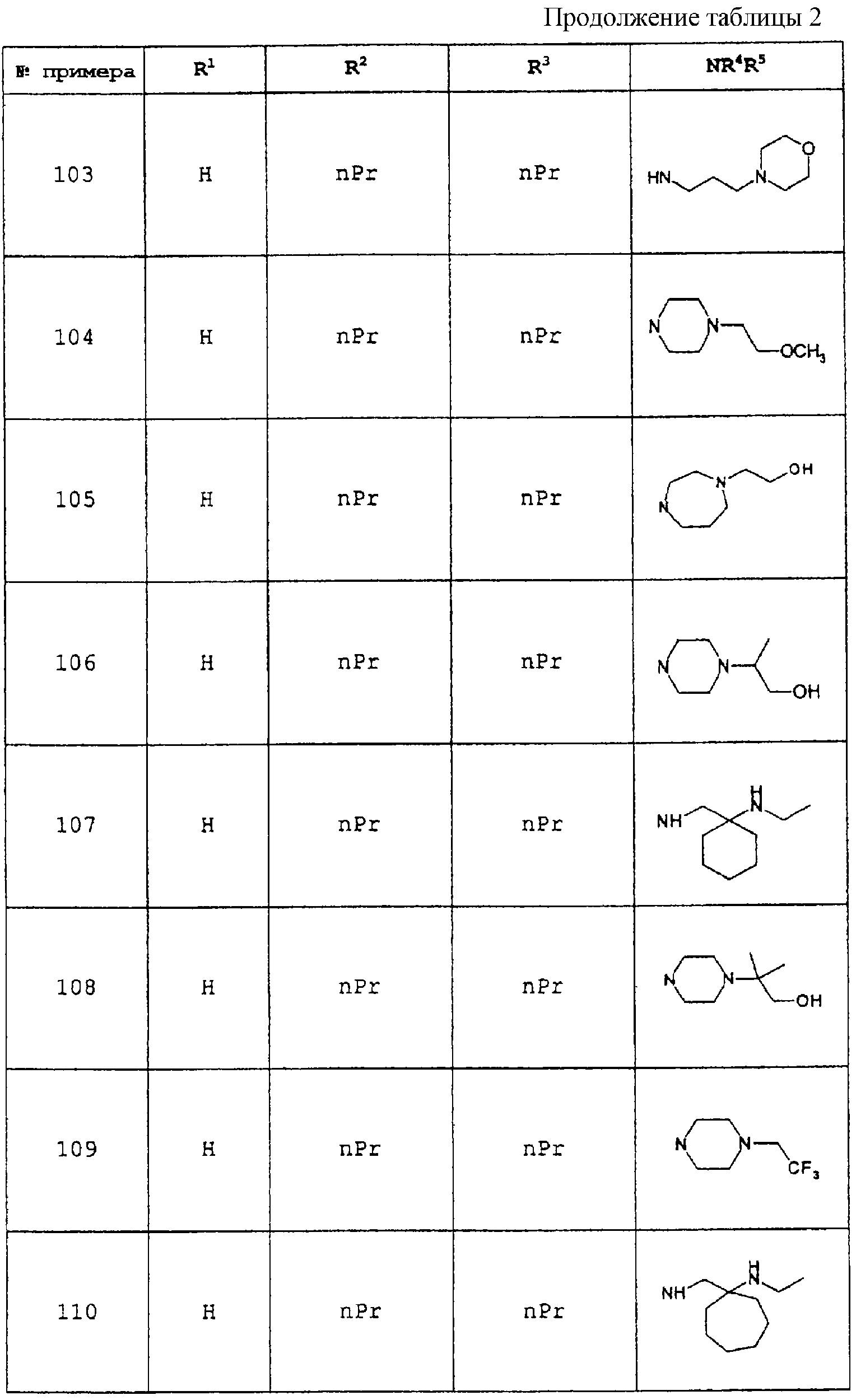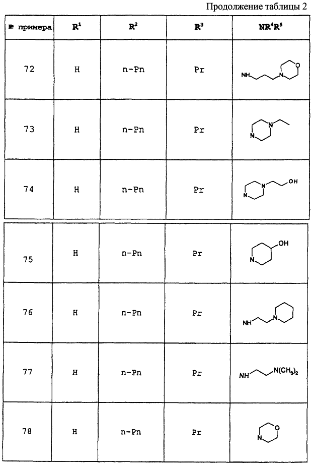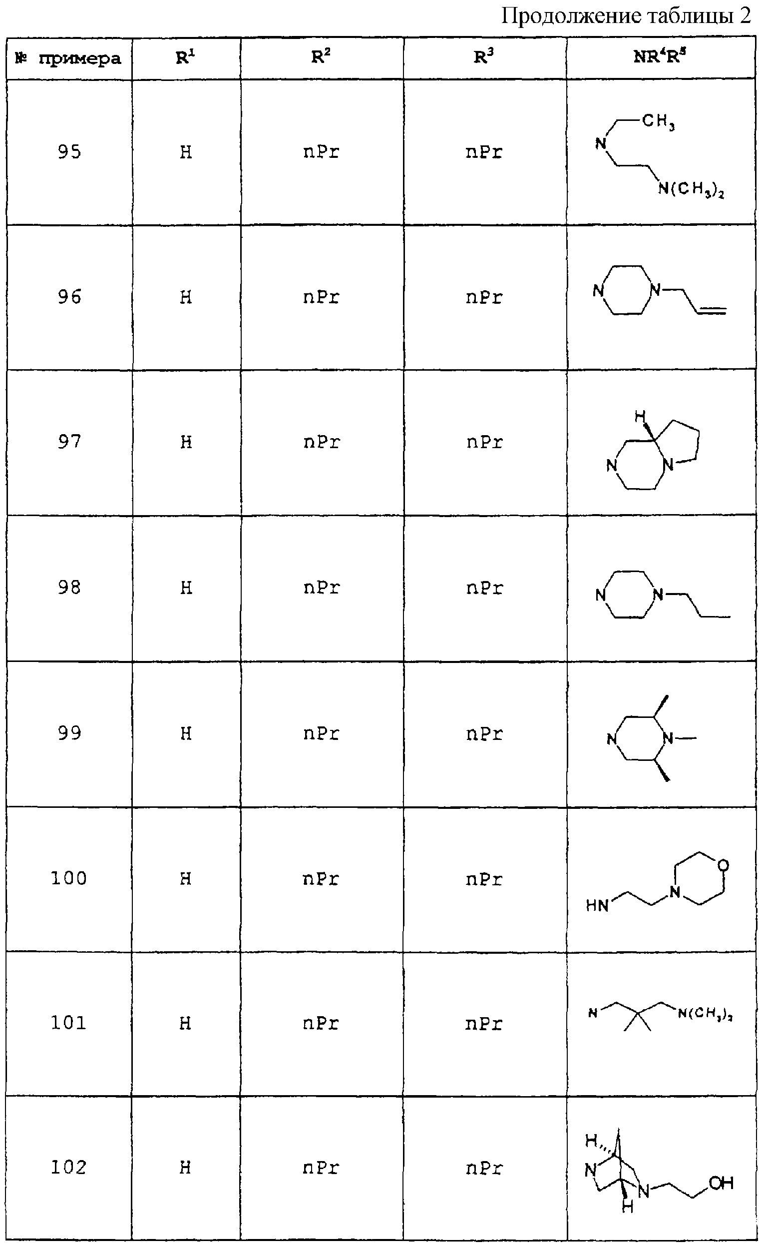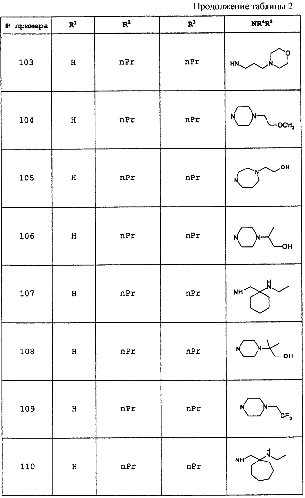 n равно 0, 1, 2 или 3 и R7 представляет пиридильную, пиперидильную, пиперазинильную, морфолинильную, триазолильную, тетразолильную, пирролидинильную, 1-этил-аминоциклогекс-1-ильную, 1-диэтиламиноциклогекс-1-ильную, 1-этиламиноциклогепт-1-ильную, 1-диэтиламиноциклогепт-1-ильную, 3,4-диметоксифенильную, 1-метил-4-фенилпиперидин-4-ильную, имидазолильную, 1-метилпиперидин-4-ильную, тетрагидрофуранильную, 2,2,6,6-тетраметилпиперид-4-ильную, 4-гидроксипиперид-4-ильную, 1-ацетамидоциклогепт-1-ильную, 1-метил-3-азетидинильную или 4-метилпиперазин-1-ильную группу. Наиболее предпочтительными являются соединения, у которых R4 представляет водород или метильную или этильную группу и R5 представляет пиридильную, 1-морфолинилэтильную, 1-пиперидил-этильную, 1-морфолинилпропильную, 1-пирролидилэтильную, 1-этиламиноциклогексилметильную, 1-этиламиноциклогептил-метильную, 1-диэтиламиноциклогексилметильную, 1-диэтил-аминоциклогептилметильную, 2-(3,4-диметоксифенил)этильную, 1-метил-4-фенилпиперидин-4-илметильную, 1Н-[1,2,4]триазол-3-ильную, пиридин-4-илметильную, 2-пиридин-2-илэтильную, 3-имидазол-1-илпропильную, 1-метилпиперидин-4-ильную, тетра-гидрофуран-2-илметильную, 2,2,6,6-тетраметилпиперидин-4-илметильную, 1-ацетамидоциклогепт-1-илметильную, 1-метил-азетидин-3-ильную или 4-метилпиперазин-1-ильную группу.