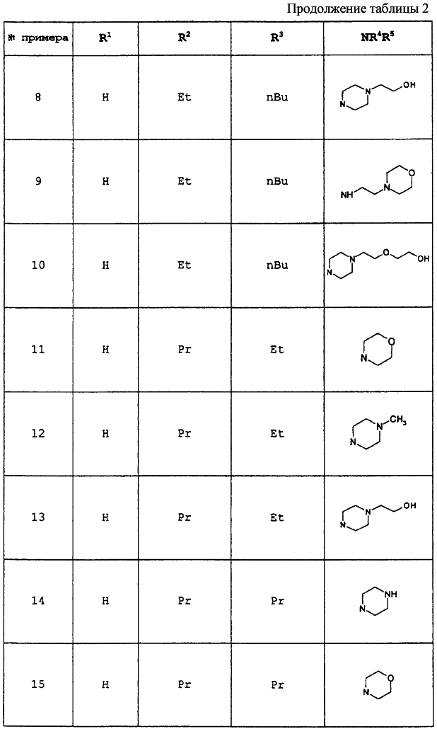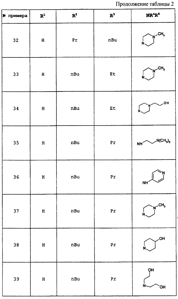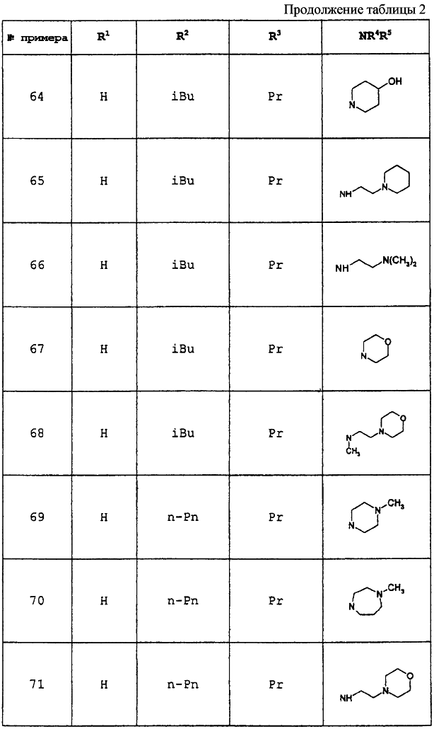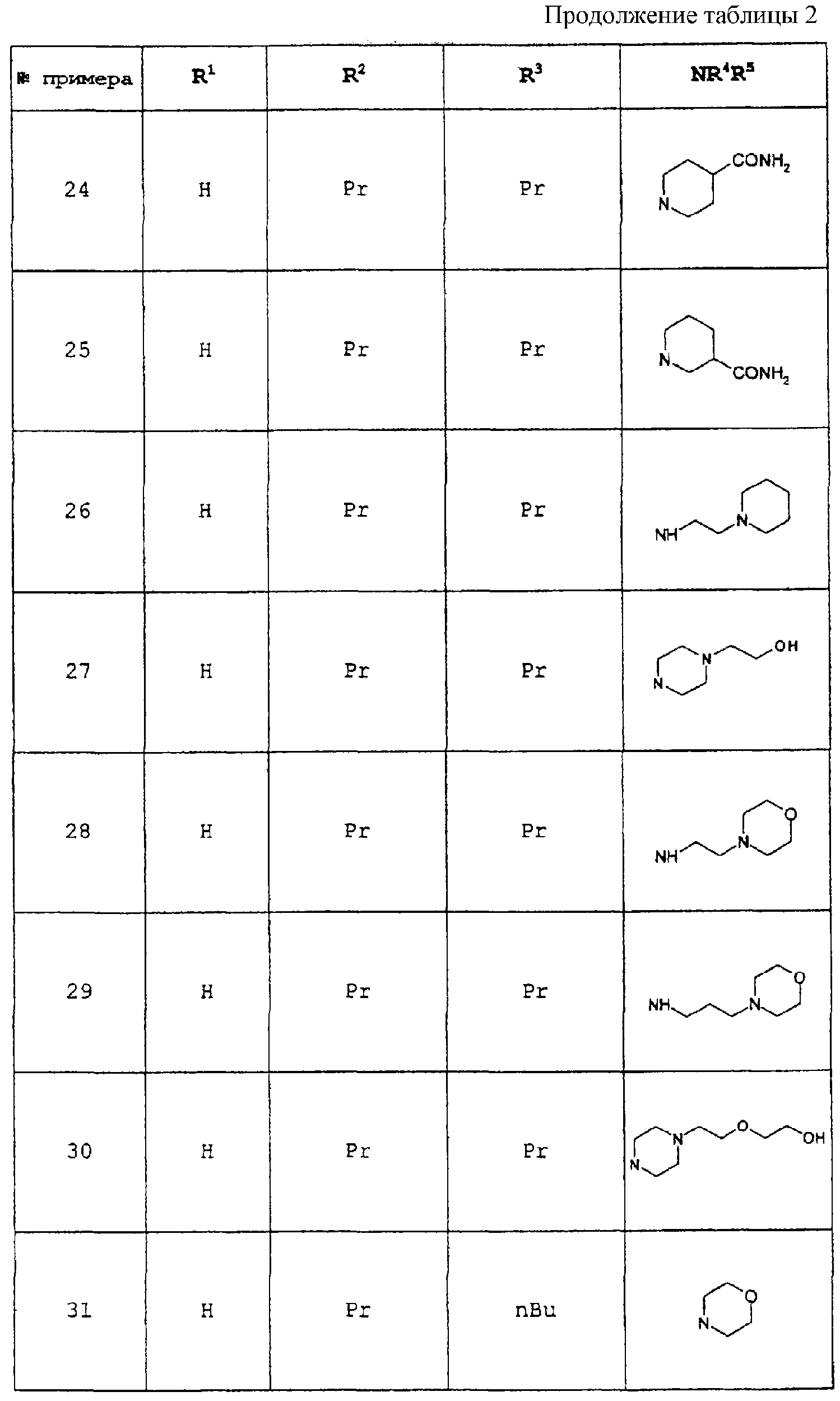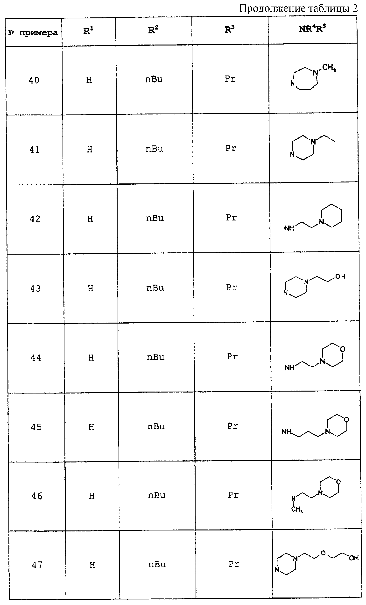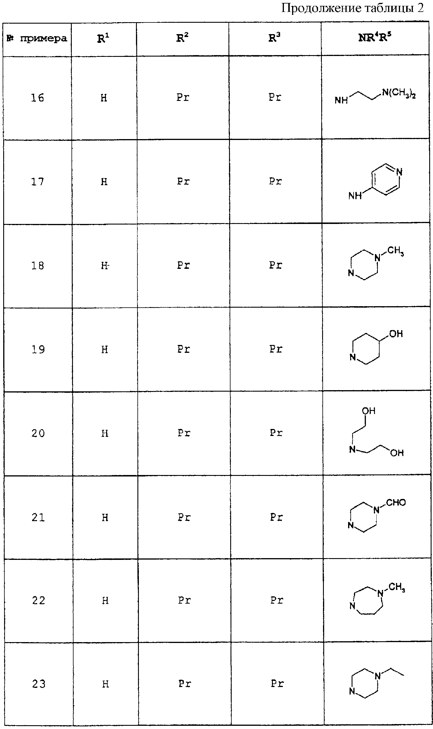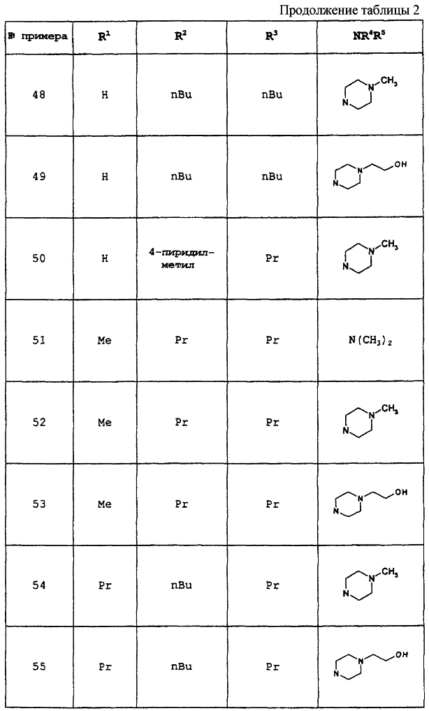 n равно 0, 1, 2 или 3 и R7 представляет пиридильную, пиперидильную, пиперазинильную, морфолинильную, триазолильную, тетразолильную, пирролидинильную, 1-этил-аминоциклогекс-1-ильную, 1-диэтиламиноциклогекс-1-ильную, 1-этиламиноциклогепт-1-ильную, 1-диэтиламиноциклогепт-1-ильную, 3,4-диметоксифенильную, 1-метил-4-фенилпиперидин-4-ильную, имидазолильную, 1-метилпиперидин-4-ильную, тетрагидрофуранильную, 2,2,6,6-тетраметилпиперид-4-ильную, 4-гидроксипиперид-4-ильную, 1-ацетамидоциклогепт-1-ильную, 1-метил-3-азетидинильную или 4-метилпиперазин-1-ильную группу. Наиболее предпочтительными являются соединения, у которых R4 представляет водород или метильную или этильную группу и R5 представляет пиридильную, 1-морфолинилэтильную, 1-пиперидил-этильную, 1-морфолинилпропильную, 1-пирролидилэтильную, 1-этиламиноциклогексилметильную, 1-этиламиноциклогептил-метильную, 1-диэтиламиноциклогексилметильную, 1-диэтил-аминоциклогептилметильную, 2-(3,4-диметоксифенил)этильную, 1-метил-4-фенилпиперидин-4-илметильную, 1Н-[1,2,4]триазол-3-ильную, пиридин-4-илметильную, 2-пиридин-2-илэтильную, 3-имидазол-1-илпропильную, 1-метилпиперидин-4-ильную, тетра-гидрофуран-2-илметильную, 2,2,6,6-тетраметилпиперидин-4-илметильную, 1-ацетамидоциклогепт-1-илметильную, 1-метил-азетидин-3-ильную или 4-метилпиперазин-1-ильную группу.