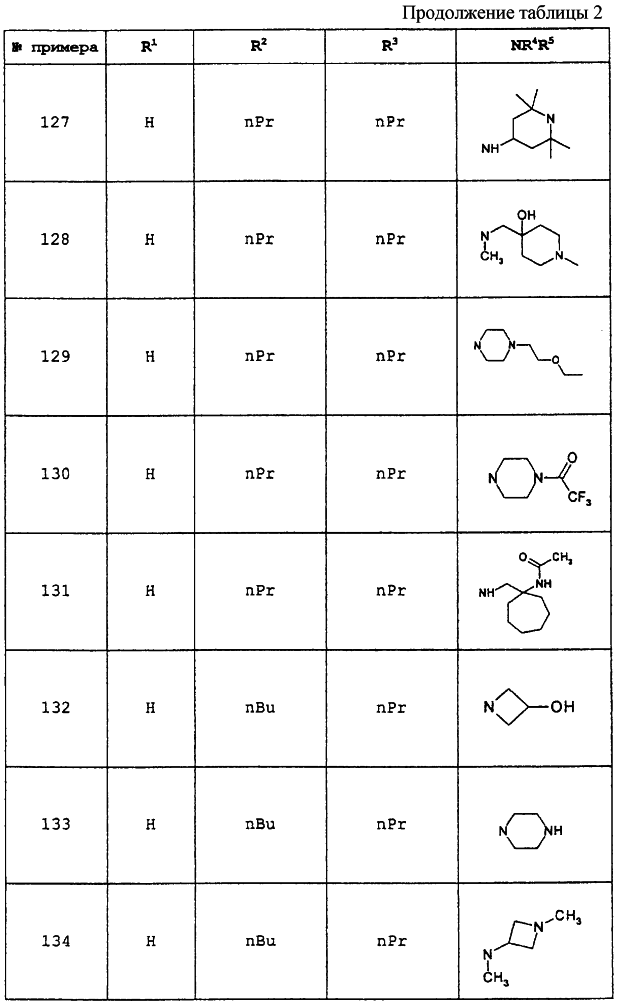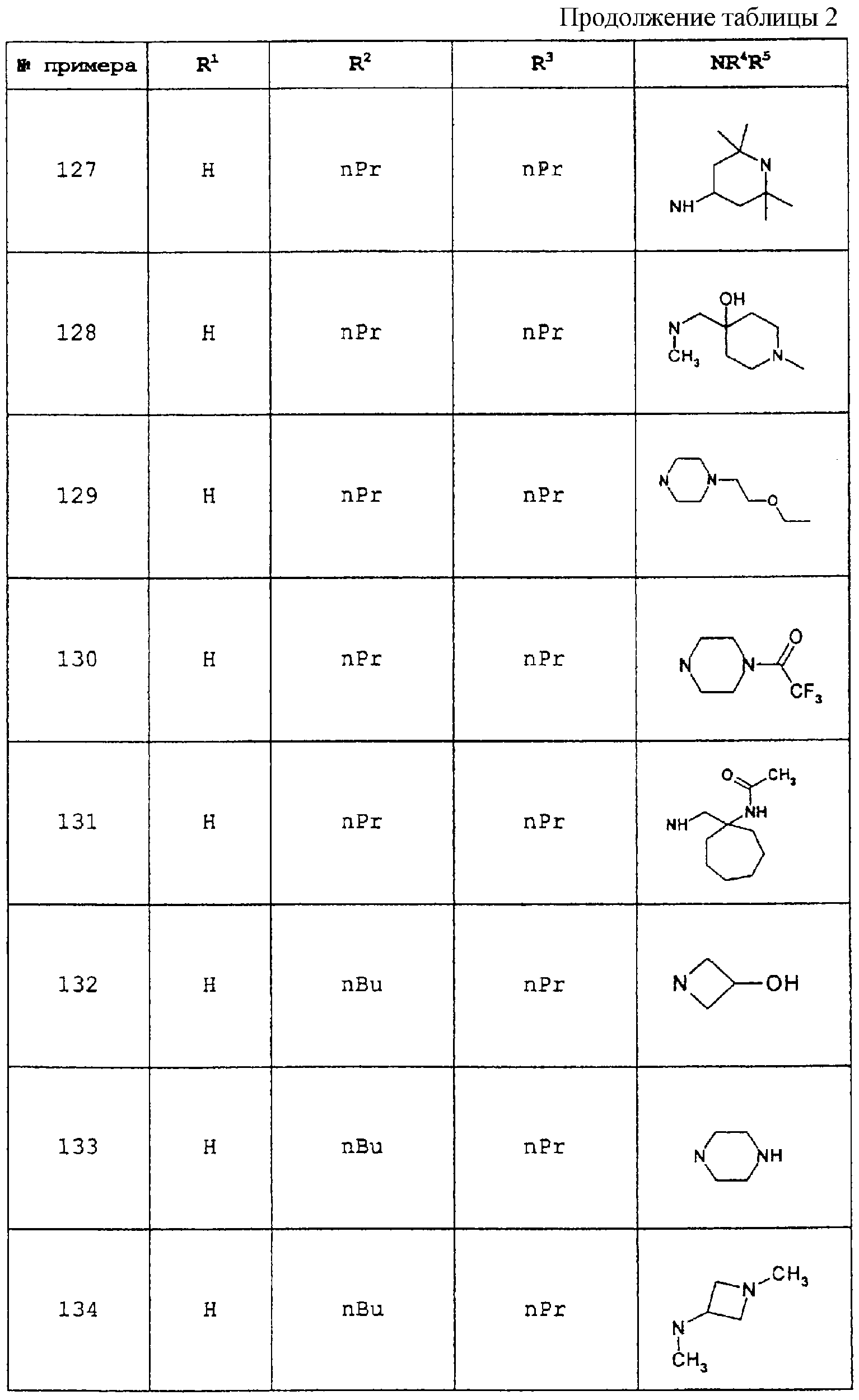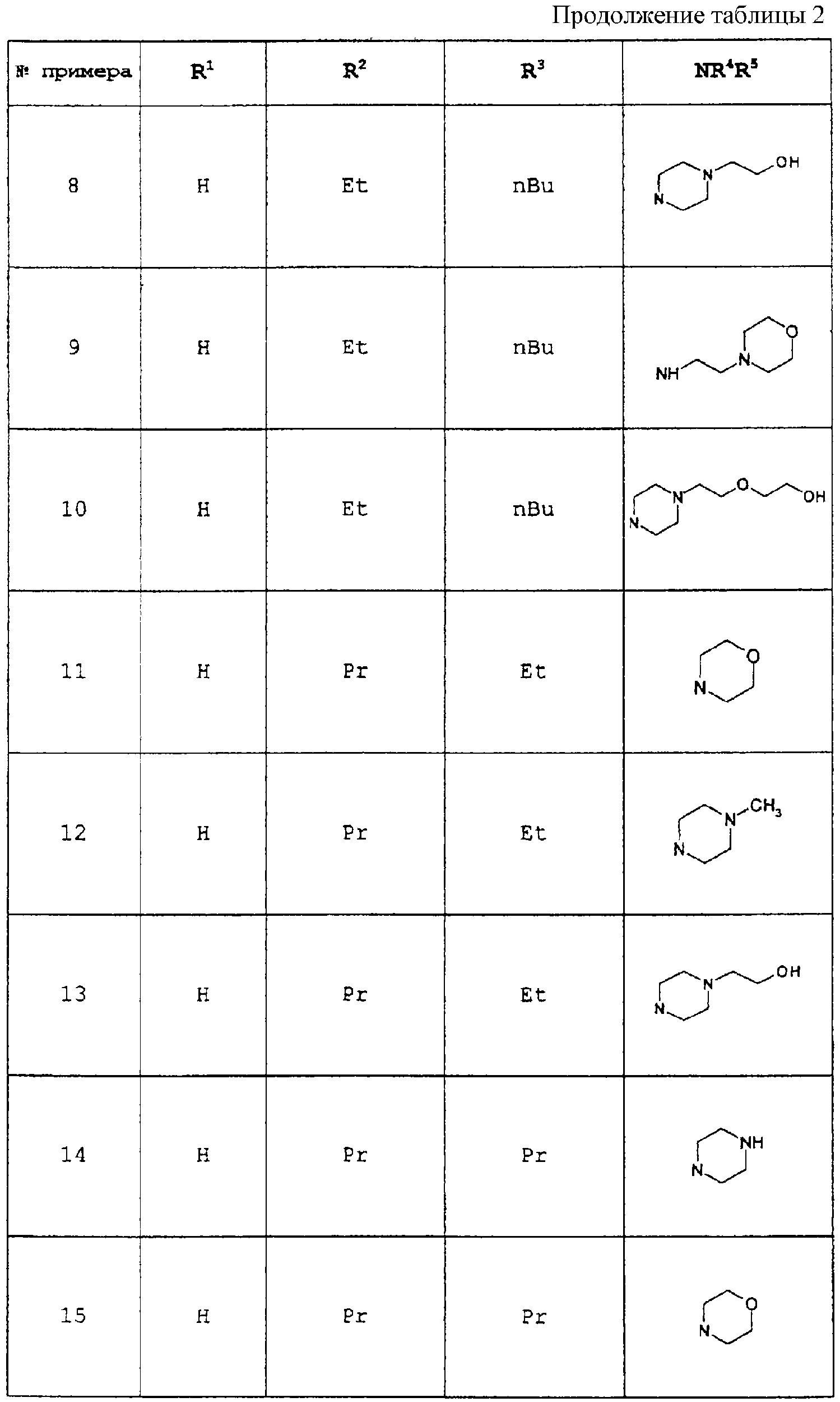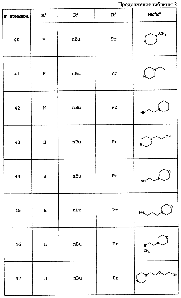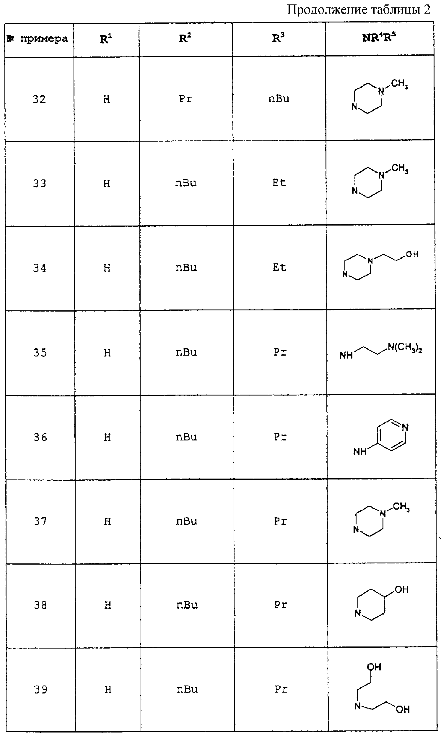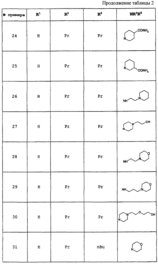 n равно 0, 1, 2 или 3 и R7 представляет пиридильную, пиперидильную, пиперазинильную, морфолинильную, триазолильную, тетразолильную, пирролидинильную, 1-этил-аминоциклогекс-1-ильную, 1-диэтиламиноциклогекс-1-ильную, 1-этиламиноциклогепт-1-ильную, 1-диэтиламиноциклогепт-1-ильную, 3,4-диметоксифенильную, 1-метил-4-фенилпиперидин-4-ильную, имидазолильную, 1-метилпиперидин-4-ильную, тетрагидрофуранильную, 2,2,6,6-тетраметилпиперид-4-ильную, 4-гидроксипиперид-4-ильную, 1-ацетамидоциклогепт-1-ильную, 1-метил-3-азетидинильную или 4-метилпиперазин-1-ильную группу. Наиболее предпочтительными являются соединения, у которых R4 представляет водород или метильную или этильную группу и R5 представляет пиридильную, 1-морфолинилэтильную, 1-пиперидил-этильную, 1-морфолинилпропильную, 1-пирролидилэтильную, 1-этиламиноциклогексилметильную, 1-этиламиноциклогептил-метильную, 1-диэтиламиноциклогексилметильную, 1-диэтил-аминоциклогептилметильную, 2-(3,4-диметоксифенил)этильную, 1-метил-4-фенилпиперидин-4-илметильную, 1Н-[1,2,4]триазол-3-ильную, пиридин-4-илметильную, 2-пиридин-2-илэтильную, 3-имидазол-1-илпропильную, 1-метилпиперидин-4-ильную, тетра-гидрофуран-2-илметильную, 2,2,6,6-тетраметилпиперидин-4-илметильную, 1-ацетамидоциклогепт-1-илметильную, 1-метил-азетидин-3-ильную или 4-метилпиперазин-1-ильную группу.