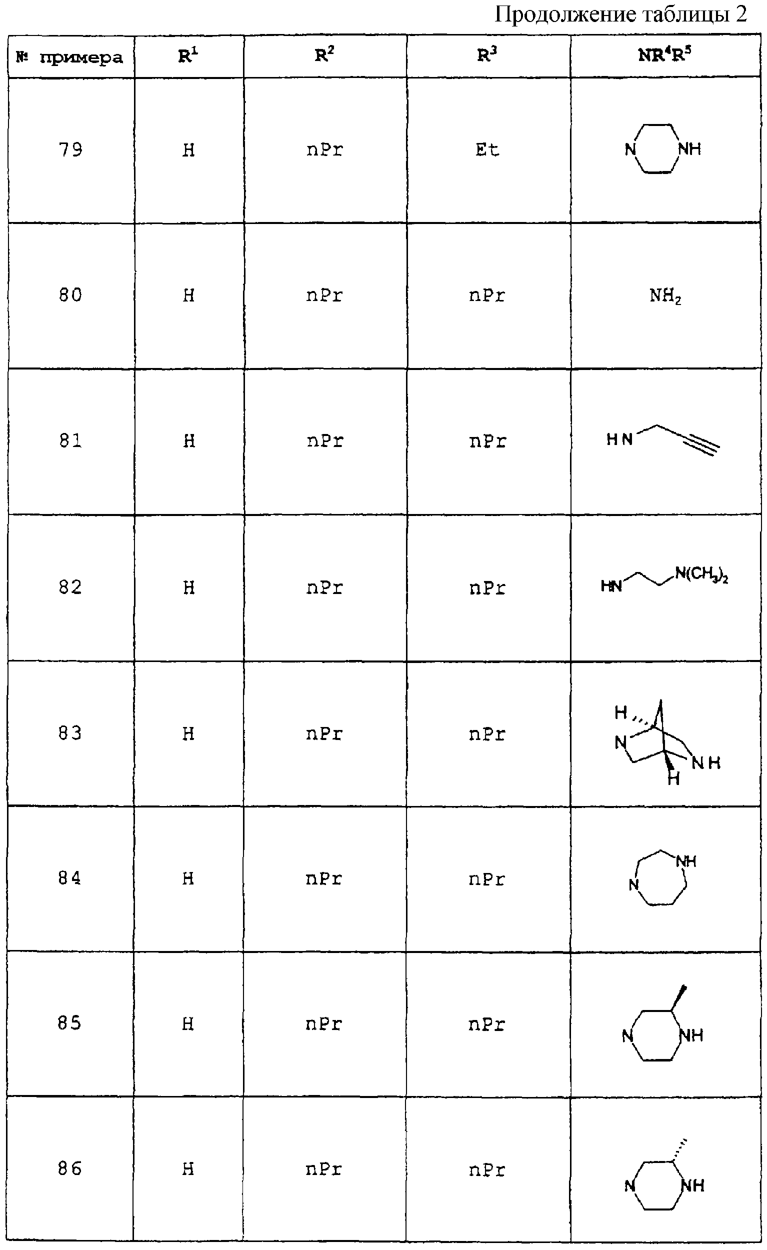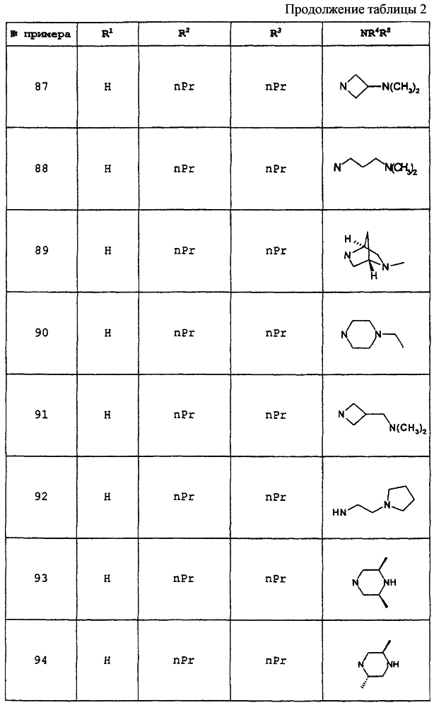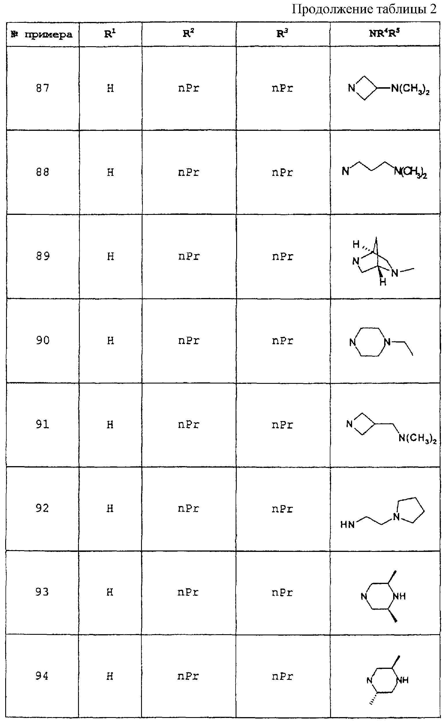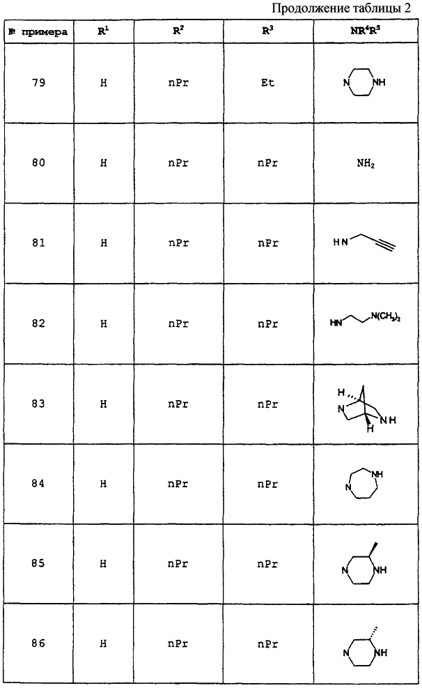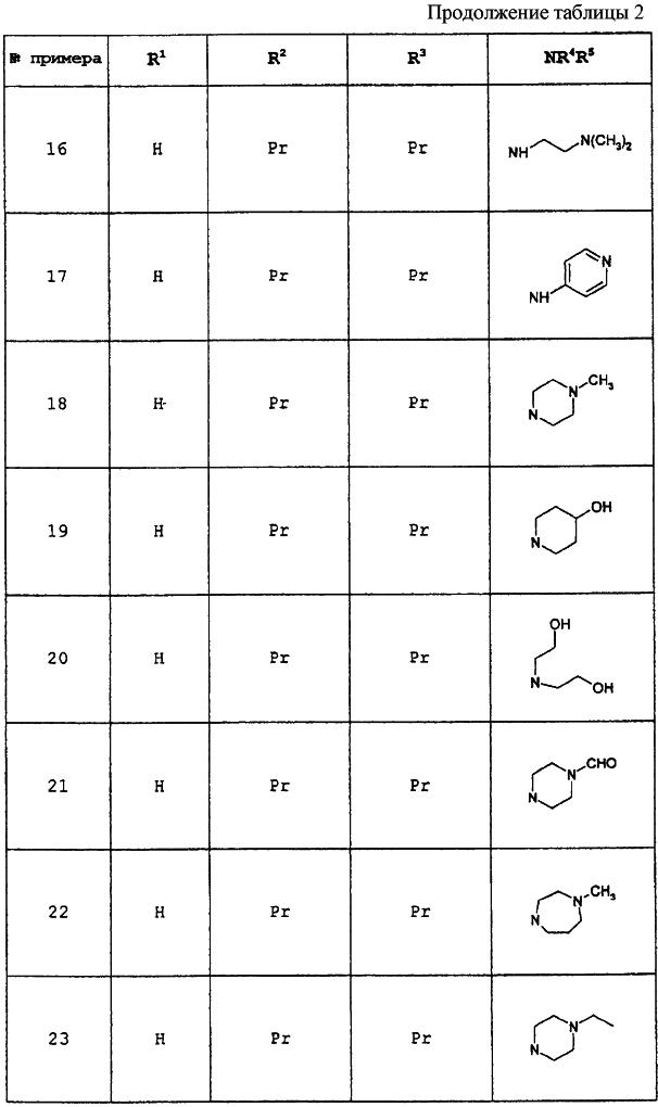 В предпочтительных соединениях изобретения кольцо, образованное R4, R5 и атомом азота, к которому они присоединены, является замещенной или незамещенной пиперидильной, пиперазинильной, [1,4]диазепан-1-ильной, морфолинильной, пиразолильной, азетидинильной, диаза-бицикло[2.2.1]гепт-2-ильной или гексагидропирроло[2,1-а]пиразинильной группой. Предпочтительными группами-заместителями являются С1-С4-алкильная, С2-С4-алкенильная, карбамоильная, амино, ди-С1-С4-алкиламино, (2-гидроксиэтил)метиламино, гидроксильная, 2,2,2-трифторэтаноильная, 2,2,2-трифторэтильная, формильная группы и гидроксиалкильные группы, алкоксиалкильные группы и гидроксиалкоксиалкильные группы, где алкильные части содержат от 1 до 4 атомов углерода. Наиболее предпочтительно, R4 и R5 вместе с атомом азота, к которому они присоединены, представляют 4-гидроксипиперидильную, 4-карбамоилпиперидильную, 3-карбамоил-пиперидильную, пиперазинильную, 4-метилпиперазинильную, 4-этилпиперазинильную, 4-формилпиперазинильную, [1,4]диазепан-1-ильную, 4-метил-[1,4]диазепан-1-ильную, 4-(2-гидроксиэтил)пиперазинильную, 4-[2-(2-гидроксиэтокси)этил]пиперазинильную, морфолинильную, аминопиразолильную, диаза-бицикло[2.2.1]гепт-2-ильную, 5-метилдиазабицикло[2.2.1]гепт-2-ильную, 5-(2-гидроксиэтил)диазабицикло[2.2.1]гепт-2-ильную, 3(S)-метилпиперазинильную, 3(R)-метилпиперазинильную, (3R,5S)-3,5-диметилпиперазинильную, (2R,5S)-2,5-диметилпиперазинильную, (2S,5R)-2,5-диметилпиперазинильную, 3-ди-метиламиноазетидинильную, 3-диметиламинометилазетидинильную, 4-аллилпиперазинильную, 4-пропилпиперазинильную, гексагидропирроло [1,2-а]пиразин-2-ильную, (3R,5S)-3,4,5-триметилпиперазинильную, 4-(2-метоксиэтил)пиперазинильную, 4-(2-гидроксиэтил)[1,4]диазепан-1-ильную, 4-(2-гидрокси-1-метил-этил)пиперазинильную, 4-(2-гидрокси-1,1-диметилэтил)пиперазинильную, 4-(2,2,2-трифторэтил)пиперазинильную, 4-(3-гидроксипропил)пиперазинильную, 4-(изопропил)пиперазинильную, 4-(2-этоксиэтил)пиперазинильную, 4-(2,2,2-трифторэтаноил)пиперазинильную, 3-гидроксиазетидинильную, 3-(2-гидроксиэтил)метил-аминоазетидинильную или 4-(2-гидроксиэтил)пиперидильную группу.