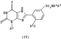 6-Тиоксопурины общей формулы (IV) получают взаимодействием 8-фенилксантинов общей формулы (V)