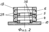 б) для термообработки тонкостенных кольцевых изделий с внутренним гофром (см. фиг.2) каждая полая оправка 2б выполнена разборной из двух деталей 4, 5, одна из которых представляет собой конструкцию с выступающей ступенью, а другая конструкцию с внутренней ступенью, контактирующей с внешней первой 4, на месте стыка составных частей оправки выполнен паз 6 для фиксации термообрабатываемых кольцевых изделий внутренним гофром. Оправки разделены между собой фиксирующими проставками 3б, опоясывающие диски которых выполнены частично перекрывающими торец оправок;