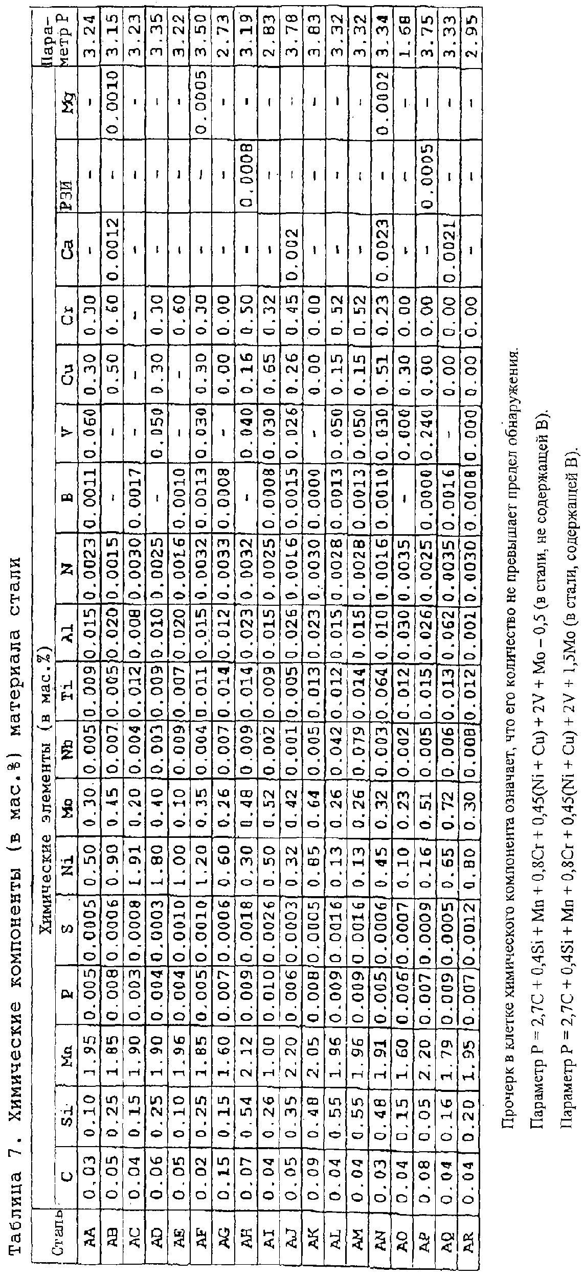 остальное – Fe и неизбежные примеси, при этом параметр Р в стали, определяемый нижеследующим выражением, находится в диапазоне от 1,9 до 4,0, а микроструктура состоит в основном из мартенсита и бейнита: