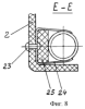 Столешница 2 (фиг.7) выполнена из листовой пластмассы методом объемного вакуумного формования. В центре столешницы (фиг.7, 9) на внутренней стороне закреплена на трубчатых заклепках 21 стальная подложка 22 с ребрами жесткости “а”. Кроме того, на внутренней стороне столешницы заклепками 23 (фиг.8) закреплены пружинные зажимы 24 с амортизаторами 25. Пружинные зажимы 24 предназначены для крепления столешницы 2 на станине 1.