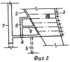 Фиг.2 – Элемент отработки рудного тела ниже дна карьера с креплением откосов и кровли выработок: 1 – отрабатываемый слой; 2 – крепление в лежачем боку; 3 – крепление в висячем боку; 4 – дробилка; 5, 6 – сборочная (рудоспуск) и транспортная выработка; 7 – выдачный ствол.
