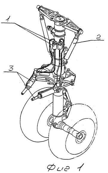 – на фиг.1 дан общий вид передней опоры шасси с установленными на ней гидромеханическими демпферами;