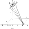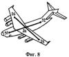 Для контроля протяженных магистральных трубопроводов пункт контроля размещают на борту самолета, пролетающего над магистральным трубопроводом. Причем четыре приемные антенны 25 и 26, 51 и 52 располагают на концах фюзеляжа и крыльев в виде геометрического креста, в пересечении которого помещают приемную антенну 24 измерительного канала (фиг.8). Состав и работа, измерительного и четырех пеленгационных каналов те же, что и для космического аппарата (фиг.7).