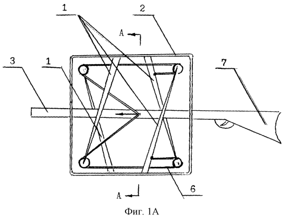 Предложенное техническое решение поясняется чертежами, где на фиг.1 изображен встречный мультилук и ложе с кареткой: А – вид сбоку, В – разрез. На фиг.2 изображено ложе с кареткой, снабженной винтовым штоком.