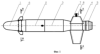 УР, размещенная в ТПК 9 (фиг.4, 5, 6), фиксируется в заданном положении, определяемом рисками 10 и 10′, нанесенными на донной части корпуса УР и на поверхности ТПК в районе задней крышки соответственно. Упругая консоль (стабилизатор) в сложенном состоянии вместе с трассером удерживается стяжкой 11, консоли рулей 6 установлены на оси и сложены в контейнере на боковую поверхность корпуса УР. ТПК 9 крепится на ПУ с помощью зацепа 12, расположенного в вертикальной плоскости симметрии с осью ТПК.