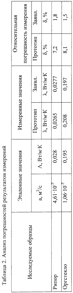 Результаты проведенных теплофизических экспериментов с использованием разработанного термозонда приведены в таблице 2 и подтверждают корректность вышеприведенных выводов о точности экспериментов.