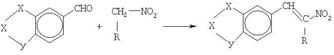 Эквимолекулярную смесь соответствующего альдегида и первичного нитроалкильного соединения с катализатором выдерживали в течение 7-10 дней при t=16 – 22°С в темноте. Выпавшие кристаллы отделяли, промывали спиртом, сушили. Выход 95 – 97%. Температура плавления соединений совпадает с известной в литературе. При многократной перекристаллизации Тпл. повышается на 1 – 1,5°С. ИК-спектры полученных веществ совпадают с описанными в литературе: [8, 9, 10].