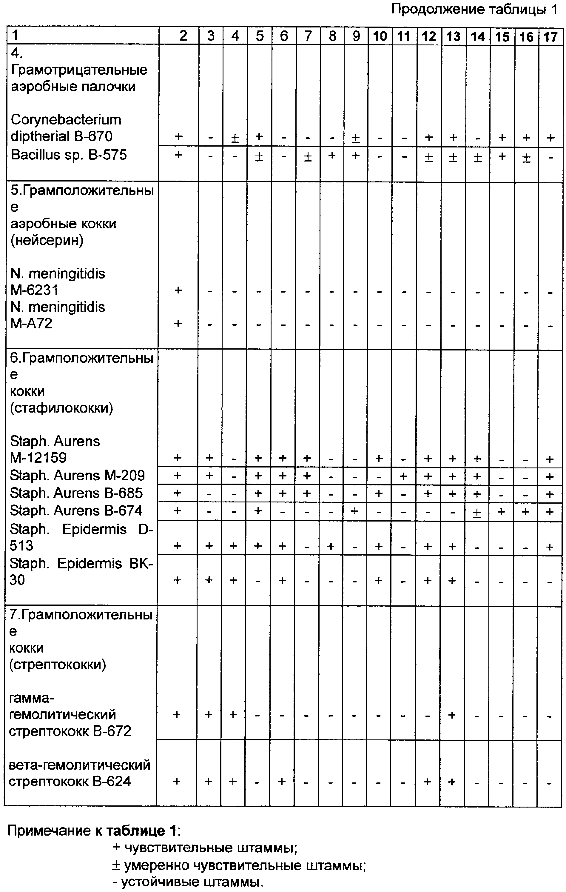 В пределах каждого рода использовали несколько видов и штаммов возбудителя для выявления пределов штаммовых и видовых вариаций чувствительности к исследуемым веществам с целью оценки их вероятной общеродовой широты действия.