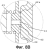 фиг.8А и фиг.8Б показывают в увеличенном масштабе клапан обычного картриджа для чернил, соответственно, в закрытом состоянии клапана и в открытом состоянии клапана;