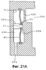 В отличие от этого в варианте согласно настоящему изобретению, который показан на фиг.20А и фиг.20Б, поскольку отверстие 82, расположенное в выступающей части 83, является герметично закрытым, то достаточно обеспечить плотный контакт передней поверхности клапанного элемента 84 с отверстием 82. Поэтому размер выступающей части 83 может быть уменьшен, насколько это возможно, до такой степени, которая обеспечивает возможность выполнения открываемой части 82. Следовательно, существует возможность уменьшения размера области узкого зазора, находящегося около отверстия 82 между клапанным элементом 84 и выступающей частью 83, посредством чего обеспечивают уменьшение гидравлического сопротивления проточного канала.