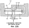 В вышеописанном варианте осуществления тыльная сторона поверхности клапанного элемента 84 выполнена таким образом, что обращена к замкнутому пространству 109, которое имеет сообщение с внешней областью только через соединительный канал 87, и перекрывает его. Однако изобретение не ограничено этим вариантом. Например, как показано на фиг.22А или фиг.22Б, проточный канал 88, обеспечивающий сообщение жидкости между отверстием 82 и выходным отверстием для подачи чернил, может быть соединен с одной стороны с замкнутым пространством 109, находящимся позади клапанного элемента 84, а проточный канал, обеспечивающий сообщение жидкости с выходным отверстием для подачи чернил может быть выполнен в камере регулировки давления таким образом, чтобы каналом для протекания чернил служила область тыльной поверхности клапанного элемента 84. Кроме того, вертикальная компоновка клапанного элемента 84, показанная на фиг.22А, помогает обеспечить то, что любой пузырь, проходящий через отверстие 85, всплывет вверх вдоль клапанного элемента в верхнюю часть камеры и не будет втянут в отверстие 82.