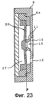 Кроме того, например, в варианте осуществления, показанном на фиг.4, пружина 22 регулировки перепада давления расположена на тыльной поверхности клапанного элемента 20 и обеспечивает принудительный упругий контакт клапанного элемента 20 с выступающей частью 11. Однако настоящее изобретение не следует ограничивать этим вариантом. Например, как показано на фиг.23, клапанный элемент 20 может быть выполнен из упругого материала, например из резины, а выступающая часть 11 может иметь выступ относительно плоскости P, образованной самим недеформированным телом 20 клапана без выступающей части, который выходит за ее пределы в направлении клапанного элемента 20. В этом варианте клапанный элемент 20 может сохранять упругий контакт с выступающей частью 11 за счет собственной упругости самого клапанного элемента 20. Посредством такой конструкции можно обойтись без смещающего элемента, например пружины 22.