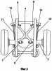 Из показанного на фиг.3 (вид сверху) следующего примера выполнения предложенной подвески для моста транспортного средства видно, что штанги 11, 12 направления движения моста могут при этом сходиться в направлении средней части транспортного средства, начиная от передних точек их крепления посредством молекулярных шарниров 13 и 14 к концу транспортного средства. Кроме того, на этом виде сверху показано расположение рычага 4 четырехточечной подвески транспортного средства, а также его шарнирных соединений с кузовом и мостом транспортного средства.
