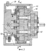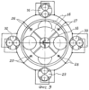 Нерегулируемая гидромашина (фиг.7, 8) выполнена аналогично шестеренный регулируемой гидромашине, но в герметичном корпусе 39 две диаметрально-противоположные шестерни 40, 41 находятся в зацеплении с внутренними зубьями наружной шестерни 42. Нерегулируемая гидромашина имеет четыре полости 43, 44, 45, 46.