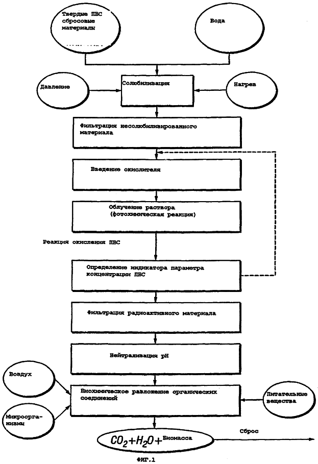 Другим недостатком существующей практики утилизации ПВС является несостоятельность существующего способа снижения объема радиоактивного материала в загрязненном обработанном потоке ПВС. В ядерной промышленности ПВС-материал часто загрязняется опасным радиоактивным материалом. Выдержка в воде при температуре, достаточной для солюбилизации ПВС-материала, не является достаточной для очистки водного сбросового потока ПВС, чтобы обеспечить экологически безопасный или легально соответствующий сброс в станции резервуаров или коллекторы системы канализации.