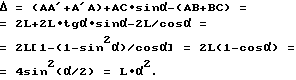 Рассмотрим оптическую схему установки (фиг.1). Диафрагма Д с малым отверстием S расположена в передней фокальной плоскости линзы Л так, что отверстие S оказывается совмещенным с главным фокусом линзы. Пучок света от ярко освещенного отверстия S, играющего роль точечного источника, падает на линзу Л и выходит из нее в виде коллимированного пучка, ширина которого ограничена диафрагмой Д1. Этот пучок освещает плоский полупрозрачный диффузор Дф, который в сочетании с плоским зеркалом З с внешним отражающим покрытием, установленным параллельно диффузору Дф и отстоящим от Дф на расстояние в несколько сантиметров, и представляет собой светоделительную часть учебного оптического интерферометра. Частичное рассеяние на диффузоре и отражение от зеркала З приводит к возникновению нескольких пучков, идущих обратно к линзе Л. Среди этих пучков есть два пучка близкой интенсивности. Один из них возникает в результате прохождения полупрозрачного диффузора Дф без рассеяния на прямом пути, последующего отражения от зеркала З и рассеяния при прохождении диффузора на обратном пути. Второй пучок возникает в результате рассеяния в диффузоре на прямом пути, последующего отражения от зеркала и прохождения диффузора без рассеяния на обратном пути. При небольшой плотности рассеивающего покрытия и должной съюстированности деталей установки эти пучки характеризуются высокой степенью взаимной когерентности и их перекрывание приводит к формированию интерференционной картины хорошего качества. Подсчитаем разность хода интерферирующих лучей. С этой целью обратимся к фиг. 2. Рассмотрим два близких луча 1 и 2 первичного коллимированного пучка, которым на выходе из источника S соответствует очень малая апертура интерференции 2U (об апертуре интерференции и ее роли см., например, в [2, с.72, 73] ). Пусть луч 1 на прямом пути проходит диффузор Дф вблизи рассеивающего центра А без рассеяния и после отражения от зеркала З возвращается к А и испытывает рассеяние на центре А под углом , формируя рассеянный луч 1′, а луч 2 испытывает рассеяние на том же центре А под тем же углом на прямом пути и проходит повторно диффузор Дф на обратном пути без рассеяния, формируя рассеянный луч 2′ параллельный лучу 1′. Лучи 1′ и 2′ перекрываются в точке E фокальной плоскости 1-1 линзы Л. Проведем побочную оптическую ось OE. Из треугольника EOS видно, что рассеяние r между точками E и S составляет r = F tg или, с учетом малости угла , r = F . При подсчете разности хода перекрывающихся в E лучей необходимо иметь в виде следующее важное обстоятельство. При рассеянии на данном центре А имеет место скачок фазы, величина которого зависит от свойств рассеивающего центра. Но поскольку оба луча 1′ и 2′ возникают в результате рассеяния на одном и том же центре А под одним и тем же углом , эти скачки фаз оказываются одинаковыми и при расчете они выпадают. Поэтому величина определяется только геометрическими соотношениями. Проведем отрезок СД, перпендикулярный к лучам 1′ и 2′. В силу таутохронности участков путей СЕ и ДЕ будем иметь:![]() Учитывая, что = r/F, можем записать = L (r/F)2. (2)Из формулы (2), как и из соображений симметрии следует, что при нормальном падении первичного пучка на зеркало З интерференционная картина, формируемая в плоскости I-I, так же как и идентичная картина в плоскости наблюдения II-II, должны пр