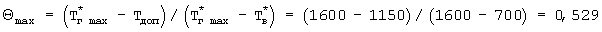 где – критерий эффективности системы охлаждения или величина относительной глубины охлаждения; , – температуры заторможенного потока соответственно газа и охлаждающего воздуха; Тл – температура материала лопатки, за которую следует принять допустимую температуру материала лопаток Тдоп. Современные материалы, из которых изготавливают сопловые лопатки, допускают нагрев до Тдоп=1150К. Температура газа «горячих» зон может быть равной =1600К, температура газа «холодных» зон может быть равной =1250K. Температура охлаждающего воздуха может быть равной =700K.