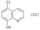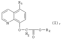 Настоящее изобретение относится к способу получения производных хинолина реакцией 8-гидроксихинолинов с эфирами хлоруксусной кислоты. Хинолиновые производные, используемые для защиты выращиваемых растений от фитотоксического действия гербицидов, известны, например, из ЕР-А 0094349 и US 5441922. В соответствии с ЕР-А 0094349 такие хинолиновые производные могут быть получены реакцией 8-гидроксихинолинов с производными хлоруксусной кислоты в присутствии основания в инертном растворителе при повышенной температуре. Достигаемый выход продукта оказывается неудовлетворительным, в особенности при крупномасштабном получении этих соединений. Более того, при осуществлении этого способа образуются нежелательные побочные продукты, например спирты, которые значительно снижают качество продукта. Целью настоящего изобретения является соответственно разработка способа получения производных хинолина, который характеризуется высоким выходом и хорошим качеством продукта и осуществление которого позволяет устранить недостатки известных способов. Предлагаемый в соответствии с изобретением способ получения соединения формулы I в которой R1 обозначает атом водорода или хлора, а R2 обозначает водородный атом, С1-C8алкил или С1-С8алкил, замещенный C1-С6алкокси или С3-С6алкенилокси, включает а) введение основной части от того количества соединения формулы II которое должно взаимодействовать, в смесь растворителей, включающую по меньшей мере один органический растворитель, способный образовывать с водой азеотроп, и по меньшей мере один апротонный биполярный растворитель; б) дозирование в водное сильное основание, взятое в количестве, эквивалентном основной части общего количества этого соединения формулы II; в) добавление оставшейся части от того количества соединения формулы II, которое должно взаимодействовать; г) добавление слабого основания в количестве, которое по меньшей мере эквивалентно этой оставшейся части; д) удаление воды из реакционной смеси азеотропной дистилляцией; е) добавление соединения формулы III в которой R3 имеет такие же значения, как указанные для формулы I; и ж) выделение из реакционной смеси полученного соединения формулы I. Соединение формулы I может быть выделено, например, осаждением из воды и фильтрованием с последующей сушкой. Особое предпочтение отдают выделению соединения формулы I из реакционной смеси после завершения реакционной стадии е) отгонкой растворителей, предпочтительно под пониженным давлением, преимущественно под вакуумом. После отгонки растворителей с целью нейтрализовать избыток основания в предпочтительном варианте в расплав продукта добавляют небольшое количество уксусной кислоты, после чего добавляют воды с целью удалить соли. Водную фазу отделяют, а фазу органического продукта вновь экстрагируют водой. Экстракции водой в предпочтительном варианте проводят при температурах от 80°С до температуры кипения реакционной смеси, преимущественно при температуре от 90 до 95°С. После отделения второй водной фазы воду, которая все еще растворена в расплаве продукта, можно отгонять под пониженным давлением, преимущественно под вакуумом. Исходное соединение формулы II в способе в соответствии с изобретением используют в виде двух частей. Основную часть, предпочтительно от 0,70 до 0,98 молярного экв. (от 1 