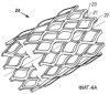 Аналогичным образом, если радиальные сжимающие усилия приложить к расширенной бистабильной трубе, она снимается в радиальном направлении и бистабильные ячейки эластично деформируются до достижения критической геометрического формы. В этот момент бистабильные ячейки сжимаются до конечной сжатой структуры. Таким образом, расширение бистабильных труб является реверсным и повторимым. Следовательно, бистабильная труба может быть повторно используемым инструментом, который по выбору трансформируется между расширенным состоянием, как показано на фиг.4А, и сжатым состоянием, как показано на фиг.4В.