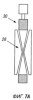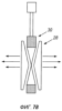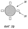 Расширяемая оправка показана на фиг.7A-7D и содержит ряд пальцев 28, которые расположены радиального вокруг конической оправки 30. На фиг.7А, 7С показаны виды сбоку и сверху соответственно. При проталкивании или протягивании оправки 30 через пальцы 28 они расходятся радиально наружу, как показано на фиг.7B, 7D. Расширяемую оправку используют таким же способом, как элемент механического пакера для развертывания бистабильной расширяемой трубы и соединителя.
