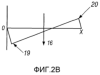 Кривая прогиба под действием силы для этого варианта симметрична и иллюстрируется на фиг.2А. Посредством приложения любого предварительного изгиба к стержню или асимметричному поперечному сечению кривую силового прогиба можно делать асимметричной, как показано на фиг.2В. В этой системе сила 19, требуемая для того, чтобы стержень принял одно устойчивое положение, больше силы 20, требуемой для создания обратного прогиба. Сила 20 должна быть больше нуля, чтобы система имела бистабильные характеристики.