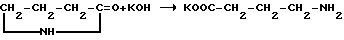 Наиболее близким по технической сущности и достигаемым результатам к предлагаемому является известный двухстадийный способ получения -аминомасляной кислоты из -пирролидона ( , HOUBENWEYL, Methoden der Organischen Chemie, 4 th., Bd. XI/2, S. 507, 1958).