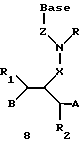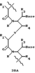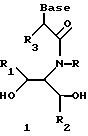 (57) Реферат: Описываются новые производные аминокислот или аминоспиртов формулы 1 в любой из групп I, II: где N обозначает азот. Группа I: Х обозначает CHR2OH, где R2 обозначает Н, (низший алкил)амин или (низший алкил)имидазол; Y обозначает Base-(CH2)n-, где Base обозначает негалогенизированное вариабельное нуклеозидное основание, где n равно 1-7; А обозначает карбонил; Z обозначает Н или ОR3, где R3 обозначает Н, низший алкил, (низший алкил)амин или (низший алкил)имидазол; W обозначает CHR4OH, где R4 обозначает Н, (низший алкил)амин или (низший алкил)имидазол. Группа II: А обозначает карбонил; Х обозначает Ваsе-(CH2)n-, где Ваsе обозначает негалогенизированное вариабельное нуклеозидное основание, где n равно 1-3; Y обозначает -CH2OH; W обозначает -CH2OH; Z обозначает Н. Соединения по изобретению являются аналогами олигонуклеотидов, в которых фуранозное кольцо встречающейся в природе нуклеиновой кислоты заменено на остаток аминокислоты или модифицированного аминоспирта. В некоторых воплощениях новые соединения по изобретению, в частности, пригодны для антисмыслового контроля экспрессии генов. Соединения по изобретению также могут быть использованы в качестве зондов для гибридизации нуклеиновых кислот или в качестве праймеров. 2 с. и 6 з.п. ф-лы, 4 табл., 34 ил.