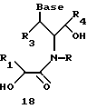 На фиг. 17 показан синтез тимидинуксусной кислоты, замещенной N-гидроксиламинокислотным строительным блоком 150 и его аналогом 149. Эти мономерные строительные блоки полезны для получения нуклеиновой кислоты с гидроксаматными скелетами.