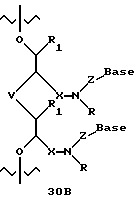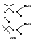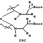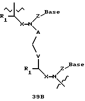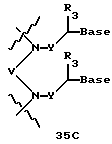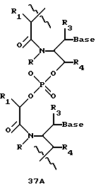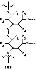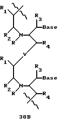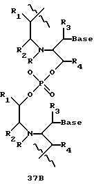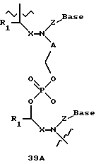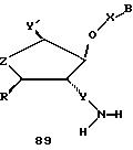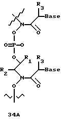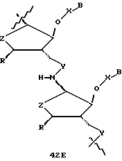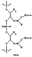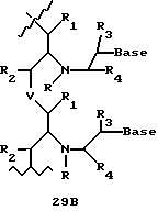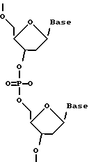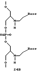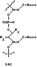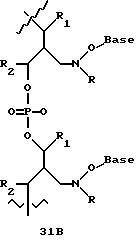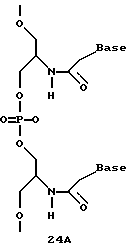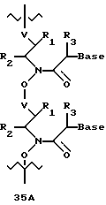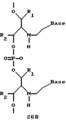 Подходящие “сочетающие группы” в 2′, 3′, 4′ или 5′ положении для синтеза олигомера средствами фосфорамидиттриэфирной химии, называемой здесь “амидитной” химией, включают в себя N,N-диизопропиламино- -цианоэтоксифосфин, N,N-диизопропиламино-метоксифосфин, N,N-диэтиламино-цианоэтоксифосфин и (N-морфолино)-метоксифосфин (Moore, M.F. et al., J.Org. Chem. , 1985, 50, 2019-2025; Uznanski, A.W., et al., Tetrahedron Letts., 1987, 28, 3401-3404; Bjergarde, К. , et al, Nucl Acids Res., 1991, 19, 5843-5850; Dahl, O. Sulfur Reports, 1991, 11, 167-192). Родственные сочетающие группы, такие как N,N-диизопропиламино-метил-фосфин или N,N-диэтиламино-метил-фосфин, также могут быть использованы для получения метилфосфонатов. Метилфосфонатные олигомеры могут быть удобным образом синтезированы с использованием сочетающих групп, таких как N,N-диизопропиламино-метилфосфорамидит. Синтез нуклеомономерных амидитов по изобретению может быть осуществлен традиционными способами (например Gryaznov, S.M., et al., Nucl Acids Res. , 1992, 20, 1879- 1882; Vinayak, R., et al., Nucl Acids Res., 1992, 20, 1265-1269; Sinha, N. D. , et al., Nucl Acids Res., 1984, 12, 4539-4557; и другие указанные здесь ссылки).