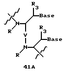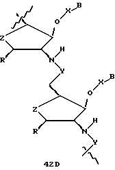 Нуклеомономеры по настоящему изобретению в основном характеризуются как группировки или остатки, заменяющие фуранозное кольцо, которое имеется в природных нуклеотидах, аминокислотными или модифицированными аминоспиртовыми остатками. Примерные мономеры и олигомеры по изобретению показаны в формулах 1-41. Включение этих описанных здесь мономеров в состав олигонуклеотидов позволяет синтезировать соединения с улучшенными свойствами; эти улучшенные свойства включают в себя (1) возросшую липофильность в результате удаления заряда, имеющегося благодаря фосфодиэфирным связям (Dalge, J.М. et al., Nucleic Acids Res., 1991, 19, 1805), и (2) устойчивость к разрушению ферментами, такими как нуклеазы. Олигомеры, содержащие эти мономеры, могут быть совершенно стабильны для гибридизации с последовательностями-мишенями и превосходят немодифицированные нуклеозидные остатки в одном или нескольких применениях.
