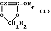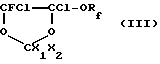 (57) Реферат: Описываются новые термообрабатываемые сополимеры на основе тетрафторэтилена, полученные взаимодействием (A) фтордиоксола формулы I, где Rf является перфторалкилом, имеющим от 1 до 5 атомов углерода, Х1 и Х2, одинаковые или различные друг от друга, являются -F или CF3, Z выбран из -F, -H-, Cl в количестве 0,1 – 15 мол.%. от общего количества мономеров, (В) перфторированного мономера, выбранного из гексафторпропилена и перфторалкилвинилового эфира формулы CF2 = CF-ORf, где Rf является перфторалкилом C2-C4, или их смеси, в количестве 0 – 15 мол.% от общего количества мономеров, (C) тетрафторэтилена в оставшемся количестве до 100 мол.%, причем общее количество мономеров (A) и (B) ниже или равно 20 мол.%. Новые сополимеры имеют улучшенные механические свойства, в особенности при высоких температурах, в сочетании с превосходными оптическими свойствами. 8 з.п. ф-лы, 4 табл. Настоящее изобретение относится к тетрафторэтиленовым термообрабатываемым сополимерам. В частности, настоящее изобретение относится к тетрафторэтиленовым термообрабатываемым сополимерам с фтордиоксолом, имеющим улучшенные механические свойства, в особенности при высоких температурах, в сочетании с превосходными оптическими свойствами. Известно, что политетрафторэтилен (ПТФЭ) показывает очень высокую вязкость расплава, за счет чего он не может быть переработан в соответствии с технологиями, обычно применяемыми для термообрабатываемых полимеров (экструзия, формование, инжекция и т.д.). Известно устранение этого недостатка сополимеризацией тетрафторэтилена (ТФЭ) с гексафторпропеном (ГФП) (смотри, например, US Патент 2.946.763). Для того, чтобы достичь цели в сочетании приемлемых механических свойств с низкой вязкостью расплава и при этом с хорошей обрабатываемостью, необходимо вводить большое количество ГФП, обычно около 7 – 11% по молям. Однако такое большое количество ГФП вызывает значительное снижение температуры текучести и, следовательно, ухудшение свойств при высокой температуре, особенно прочности на разрыв и деформационных свойств. Следовательно, непрерывная рабочая температура снижается от величин около 260oC для ПТФЭ до около 200oC для ТФЭ/ГФП сополимеров. Другие ТФЭ термообрабатываемые сополимеры такие, в которых ТФЭ сополимеризован с перфторалкилвиниловым эфиром (ПАВЭ) и особенно с перфторпропилвиниловым эфиром (ППВЭ) (смотри, например, US Патент 3.635.926). Такие сополимеры позволяют получать удовлетворительный баланс между механическими свойствами и обрабатываемостью при количествах ППВЭ около 2 – 3% по молям. В итоге попытка устранить недостатки, описанные выше для ТФЭ/ГФП сополимеров, навела на мысль о терполимерах, где ТФЭ сополимеризован с 4 – 12% весовых ГФП и 0.5 – 3% весовых ППВЭ (смотри US Патент 4.029.868). Даже если применение ППВЭ в значительной степени увеличит ТФЭ термообрабатываемые сополимерные свойства, в особенности в отношении максимальной рабочей температуры и перерабатываемости, таким образом увеличивая область применения, однако, необходимо, во-первых, дальнейшее расширение ряда свойств и, во-вторых, создание более легких условий для синтеза сополимеров. Действительно известно, что ШТВЭ показывает низкую реакционную способность, и необходимы сложные процессы для регенерации непревращенного мономера (смотри для примера GB Патент 1.514.700). Известны диоксолы различ