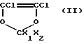 ![]() где Rf является перфторалкилом, имеющим от 1 до 5 атомов углерода; Х1 и Х2 – одинаковые или отличные друг от друга и являются -F или -CF3; Z выбран из -F, -H, -Cl, в количестве 0,1 – 15 мол.% от общего количества мономеров; (В) перфторированного мономера, выбранного из гексафторпропилена и перфторалкилвинилового эфира формулы CF2 = CF-ORf, где Rf является перфторалкилом С2 – С4, или их смеси, в количестве 0 – 15 мол.% от общего количества мономеров, (С) тетрафторэтилена в оставшемся количестве до 100 мол.%, причем общее количество мономеров (А) и (В) ниже или равно 20 мол.%. 2. Термообрабатываемые сополимеры по п.1, отличающиеся тем, что перфторалкилвиниловый эфир является перфторпропилвиниловым эфиром. 3. Термообрабатываемые сополимеры по пп.1 и 2, отличающиеся тем, что фтордиоксол формулы I используют в количестве 0,5 – 9 мол.% от общего количества мономеров. 4. Термообрабатываемые сополимеры по пп.1 – 3, отличающиеся тем, что перфторированный мономер (В) используют в количестве 0 – 10 мол.% от общего количества мономеров. 5. Термообрабатываемые сополимеры по пп.1 – 4, отличающиеся тем, что общее количество мономеров (А) и (В) ниже или равно 12 мол.% от общего количества мономеров. 6. Термообрабатываемые сополимеры по пп.1 – 5, отличающиеся тем, что в формуле I мономера (А) Х1 = Х2 = F. 7. Термообрабатываемые сополимеры по пп.1 – 6, отличающиеся тем, что в формуле I мономера (А) Rf выбран из -CF3, -С2F5 и -C3F7. 8. Термообрабатываемые сополимеры по пп.1 – 7, отличающиеся тем, что они имеют вязкость расплава такую, чтобы получить величины индекса вязкости, расплава (МГ1) от 0,5 до 50 г/101, измеренные в соответствии со стандартом ASTM 1238 – 52 Т. 9. Термообрабатываемые сополимеры по п.8, отличающиеся тем, что величина индекса вязкости расплава (МГ1) составляет 1 – 30 г/101. РИСУНКИ
