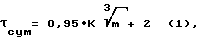 ![]() где сум – суммарное время выдержки расплава на двух переплавах, с,K – отношение температур плавления наиболее тугоплавкого компонента к температуре плавления сплава (K 1,2);m – масса расплава в тигле к моменту отключения дуги на первом переплаве, кг, при соотношении времени выдержки расплава перед разливкой на первом переплаве к суммарному времени выдержки расплава на двух переплавах, равном ![]() где 1 время выдержки расплава перед разливкой на первом переплаве, с.