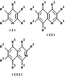 С учетом вышеизложенного настоящее изобретение относится к много компонентной системе для модификации, разложения или отбеливания лигнина, лигнинсодержащих материалов или аналогичных веществ, содержащаяа. по меньшей мере один катализатор окисления и б. по меньшей мере один соответствующий окислитель и в. по меньшей мере один медиатор. Система отличается тем, что медиатор выбран из группы, включающей гидроксипиридины, аминопиридины, гидроксихинолины, аминохинолины, гидроксиизохинолины, аминоизохинолины, с находящимися по отношению к гидрокси- или аминогруппам в орто- либо пара-положении нитрозо- или меркаптозаместителями, таутомеры названных соединений, а также их соли, простые и сложные эфиры. Неожиданным образом было установлено, что многокомпонентная система по изобретению с указанными медиаторами не имеет недостатков, присущих многокомпонентным системам, известным из уровня техники. В качестве медиаторов в многокомпонентной системе по изобретению предпочтительны соединения общей формулы (I), (II) или (III) ![]() а также их таутомеры, соли, простые и сложные эфиры этих соединении, причем в формулах (I), (II) или (III) два находящихся по отношению друг к другу в орто- либо пара-положении остатка R1 представляют собой гидрокси- и нитрозогруппу либо гидрокси- и меркаптогруппу либо нитрозо- и аминогруппу, а остальные остатки R1 являются идентичными или разными и выбраны из группы, включающей водород, галоген, гидрокси-, меркаптогруппу, формил, цианогруппу, карбамоил, карбоксигруппу, эфиры и соль последней, сульфогруппу, эфиры и соль последней, сульфамоил, нитро-, нитрозо-, аминогруппу, фенил, арил-C1-C5алкил, C1-C12алкил, C1-C5алкоксигруппу, C1-C10карбонил, карбонил-C1-C6алкил, фосфо-, фосфоно-, фосфонооксигруппу, эфиры и соль последней, и причем карбамоил, сульфамоил, амино-, меркаптогруппа и фенил могут быть незамещенными либо одно- или многократно замещены остатком R2, а арил-C1-C5алкил, C1-C12алкил, C1-C5алкоксигруппа, C1-C10карбонил, карбонил-C1-C6алкил могут быть насыщенными или ненасыщенными, разветвленными или неразветвленными и могут быть одно- или многократно замещены остатком R2, причем R2 имеет идентичные либо разные значения и представляет собой гидроксигруппу, формил, циано-, карбоксигруппу, эфиры или соль последней, карбамоил, сульфогруппу, сульфамоил, нитро-, нитрозо-, аминогруппу, фенил, C1-C5алкил, C1-C5алкоксигруппу или C1-C5алкилкарбонил и соответственно два остатка R1 либо два остатка R2 либо R1 и R2 могут быть попарно соединены мостиком [-CR3R4-] m, где m равно 1, 2, 3 или 4, и R3 и R4 имеют идентичные либо разные значения и представляют собой карбоксигруппу, эфиры или соль последней, фенил, C1-C5алкил, C1-C5алкоксигруппу или C1-C5алкилкарбонил и одна или несколько несмежных групп [-CR3R4-] могут быть заменены на кислород, серу или на необязательно замещенную C1-C5алкилом иминогруппу, а две смежные группы [-CR3R4-] могут быть заменены на группу [-CR3=R4-]. К особенно предпочтительным в качестве медиаторов, используемых в многокомпонентной системе по изобретению, относятся соединения общей формулы (I) или (II), а также их таутомеры, соли, простые или сложные эфиры, причем в формулах (I) и (II) особенно предпочтительны два находящихся по отношению друг к другу в орто-положении остатка R1, представляющие собой гидрокси- и нитрозогруппу, либо гидрокси- и меркаптогруппу, либо нитрозо- и аминогруппу
