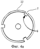 Фигуры 4 и 4а иллюстрируют тороидальную часть 12 захватной пробки, которая содержит три пазовые выемки 2, показанные без соответствующих захватных элементов.