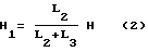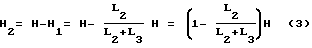 Как видно из фиг. 4, представляющей увеличенный элемент A фиг. 1, перемещение оптического волокна H от нормального положения в месте расположения первого газового инжектора 2, обусловленное его газовым потоком, складывается из двух составляющих: вариации положения оптического волокна H2 при включенном первом газовом инжекторе 2 и смещения оптического волокна H1 в той же плоскости, обусловленного газовым потоком второго газового инжектора 4. Таким образом, датчик положения оптического волокна 3 измеряет составляющую H2 отклонения оптического волокна от нормального положения. Поскольку для оценки величины натяжения оптического волокна используется величина H отклонения оптического волокна от нормального положения, возникает необходимость вычислить коэффициент, связывающий величину H с величиной H2![]() ![]() ![]() Таким образом, измеренное значение перемещения оптического волокна H1 должно быть умножено на коэффициент перед использованием для оценки натяжения по формуле (1).