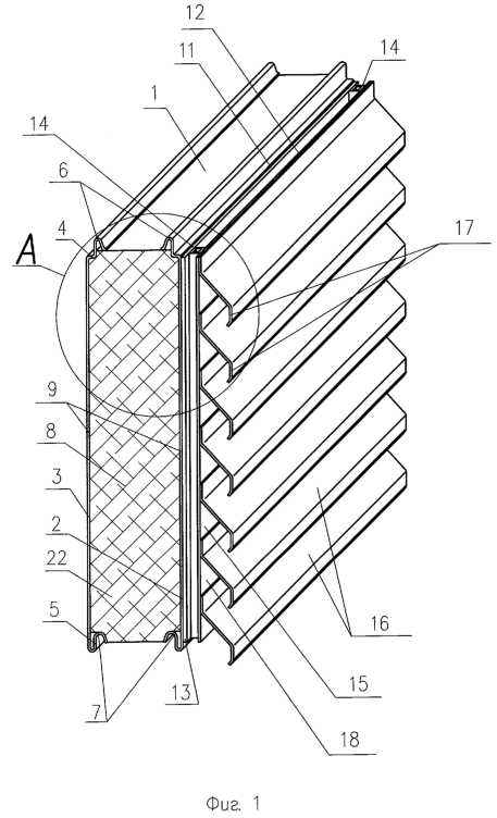 фиг.1 – общий вид сэндвич-панели. Вариант I;